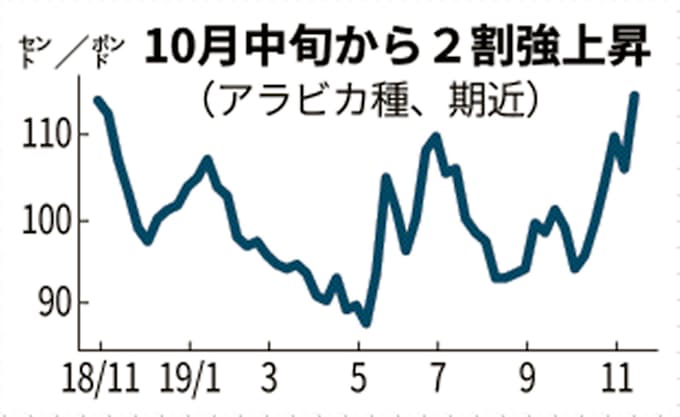 コーヒー豆が1年ぶり高値 ブラジル生産の下方修正で 日本経済新聞